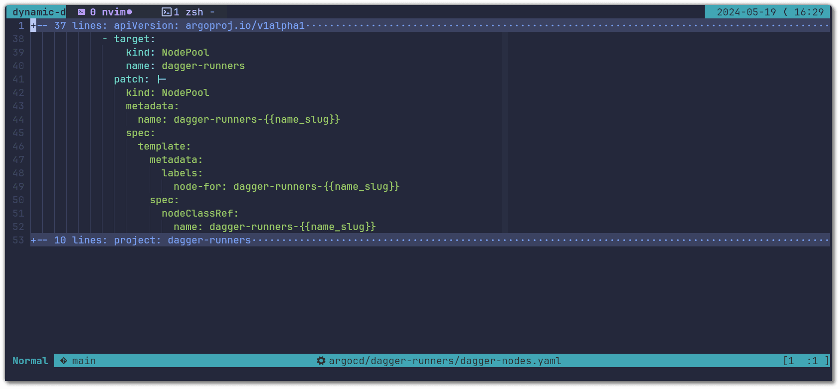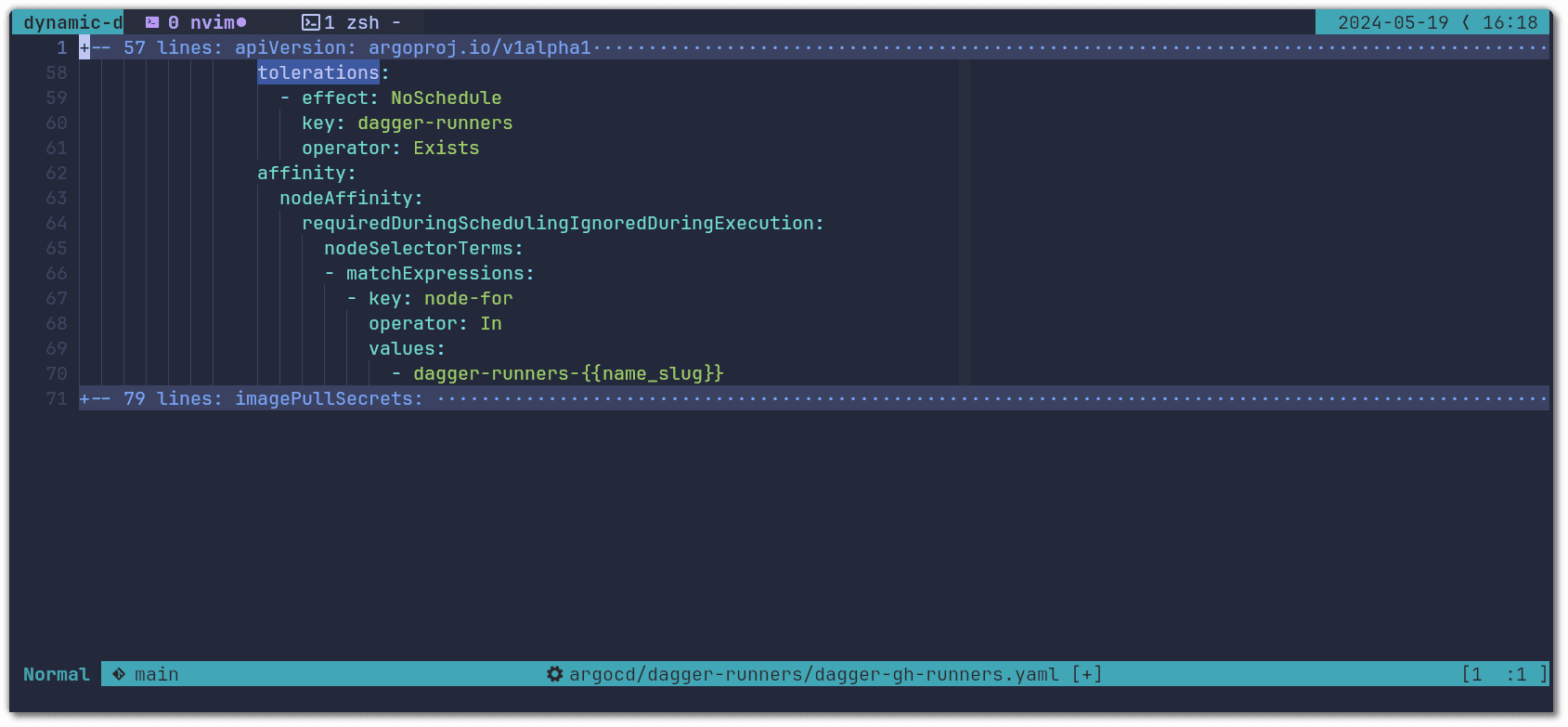 Lastly we configure the tolerations and nodeAffinity that makes it so that runner pods are only scheduled on nodes dedicated to the targeted Dagger version:
