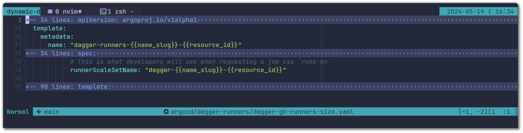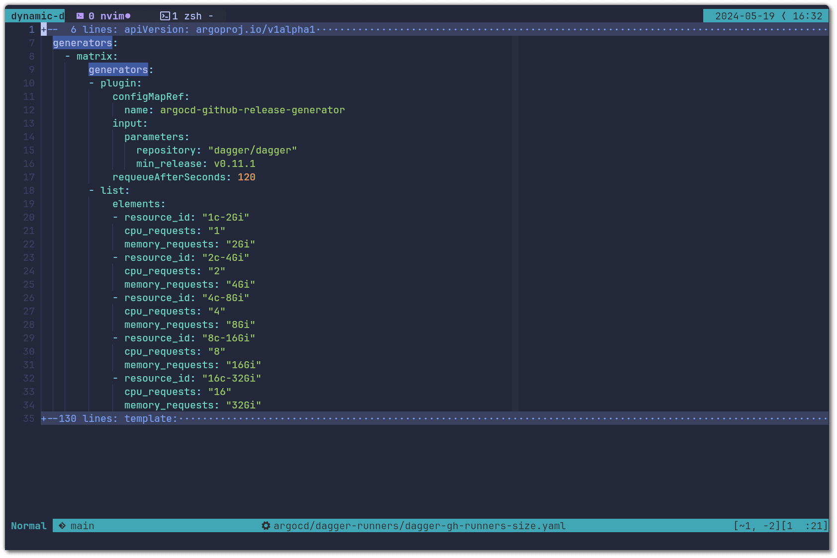 It is fairly common to have some pipelines that are heavier than others and as such require more resources. In the setup above we mentioned that we allocate the resources at the runner pod level and we let the Dagger Engine run freely without any limits. We prefer this approach because it gives the developer the flexibility of choosing the appropriate size for them. In order to give them the control of how many resources the runner pod requests (that the Dagger Engine will use) we can leverage Argo CD’s matrix and list generators. Instead of adapting the dagger-gh-runners ApplicationSet we will create a new one called dagger-gh-runners-size. You can check out the entire ApplicationSet here, inside the argocd/optional folder. Just like we did for dagger-gh-runners, you should configure the contents of githubConfigSecret and githubConfigUrl, after that you are ready to apply: