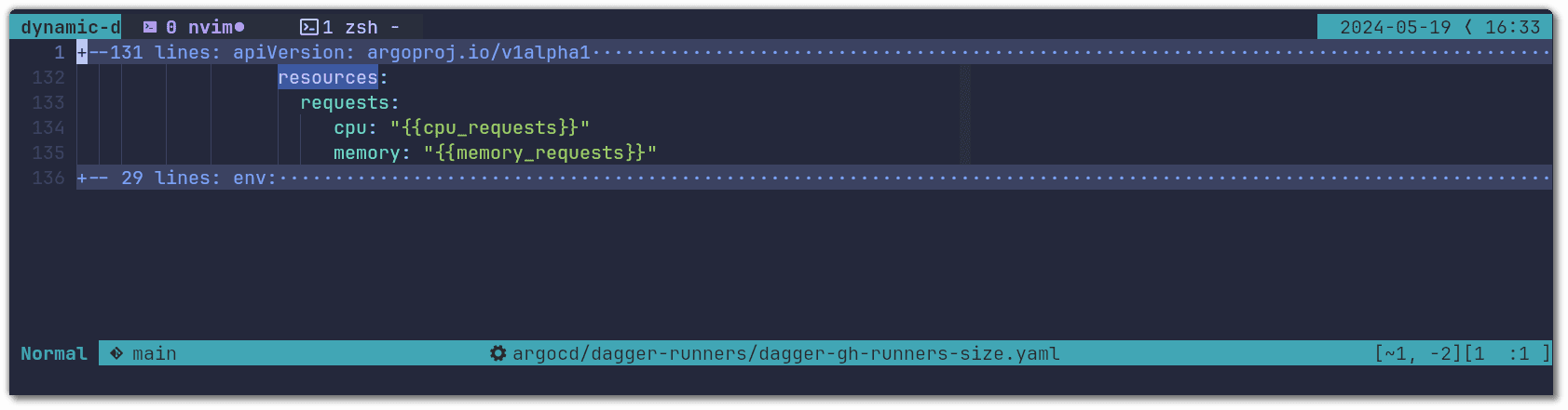 Then we used the variables defined in the list generator when specifying the resource requests for the runner pod: