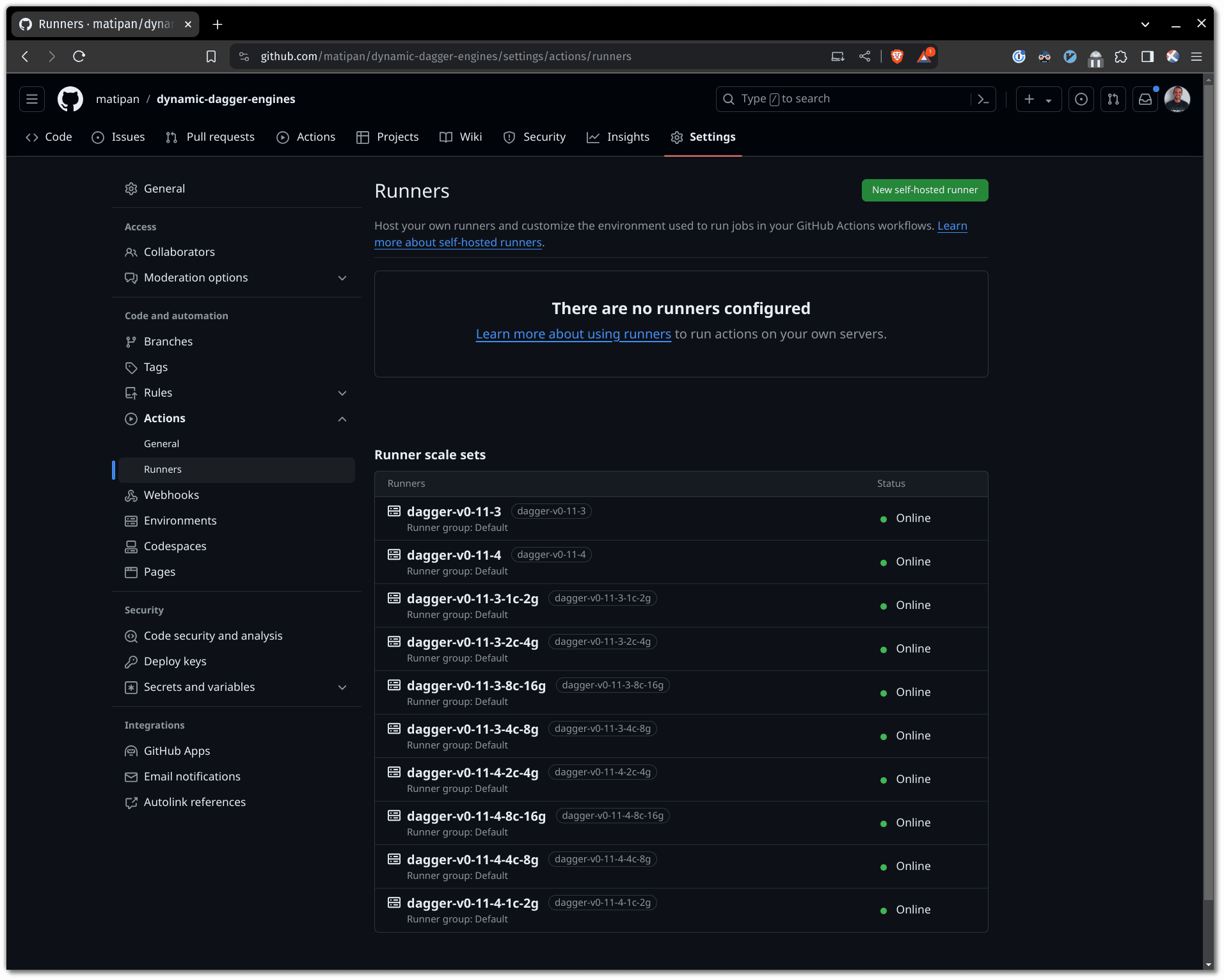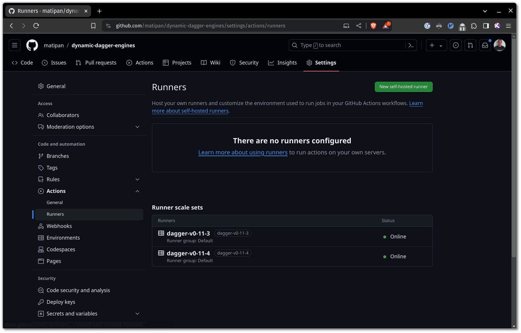 After the above command succeeds, you may want to check that the runners registered with your GitHub repo/org: