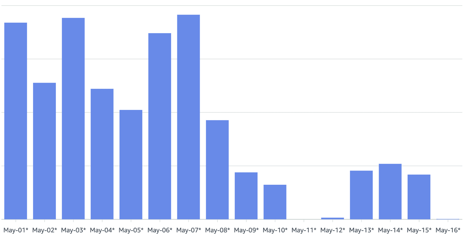 This last point is especially important since everyone wants a fast CI that is also cheap to run. We hope to dig deeper into the cost aspect in a future blog post. For now, here is how the costs changed after we switched to On-demand Dagger Engines with Argo CD and Karpenter. The change went live on May 9th:
