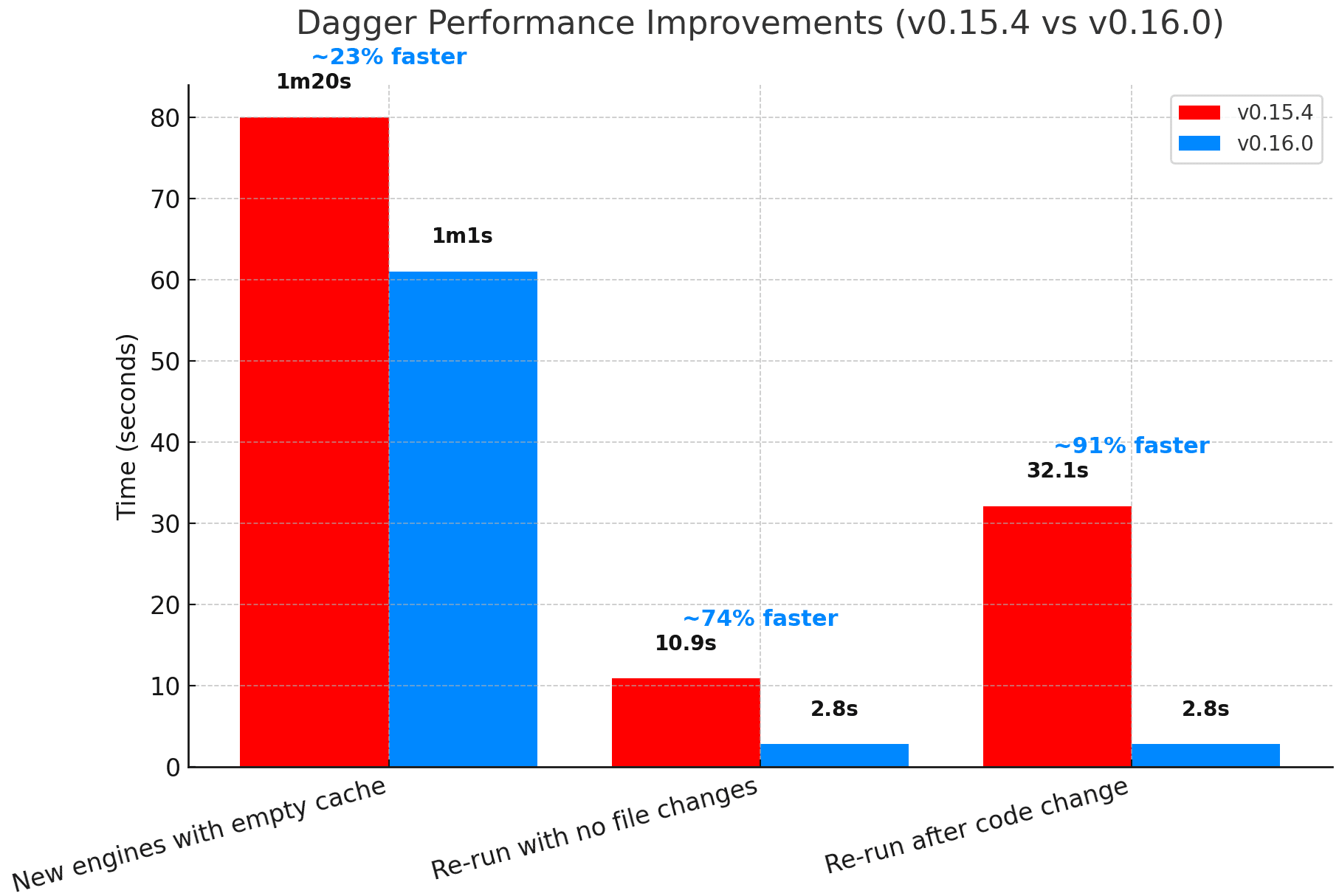 - Cache utilization of module loading is greatly improved, which can decrease load times by up to a factor of 10 when re-calling functions after changing source code in a Daggerized repo.