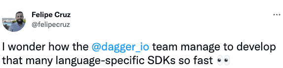 Here at Dagger, we are on a mission to make your CI/CD pipelines programmable in the language of your choice. In the last few weeks, we have made great progress towards that goal by releasing SDKs for Go, Python, Javascript and Typescript in rapid succession. So rapid in fact, that some of you wondered how exactly we managed to pull it off!