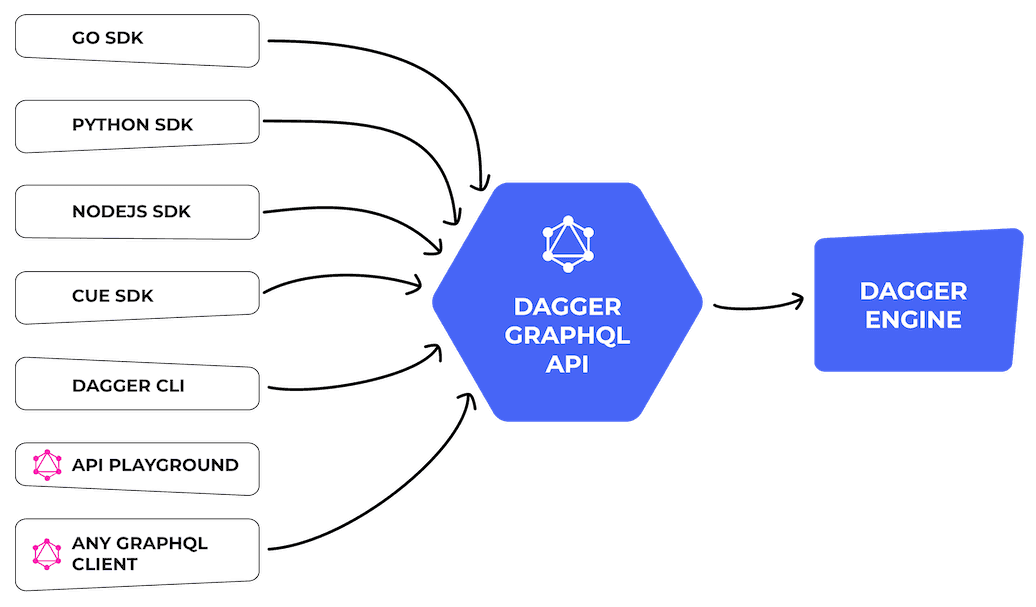 Under the hood, we use a powerful API technology called GraphQL. And as of today, so can you. We are excited to publicly release the Dagger GraphQL API: a unified interface for programming the Dagger Engine using any standard GraphQL client.