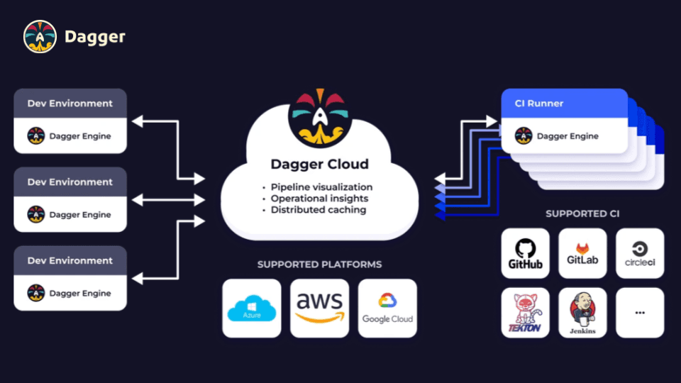 The typical Dagger Cloud customer is a software team looking to integrate Dagger into their existing CI. By connecting all their Dagger Engines to a centralized control plane, they can collect and visualize telemetry about their pipelines; orchestrate the distribution of cache data; and feed Dagger-specific insights back into their source control.